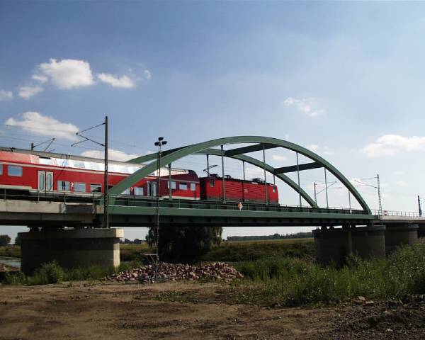 Der Stromüberbau ist als zweigleisiger Stabbogen mit außen liegenden Dienstgehwegen und Vierendeelverbänden ausgeführt worden.