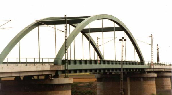Der Stromüberbau ist als zweigleisiger Stabbogen mit außen liegenden Dienstgehwegen ausgeführt worden.