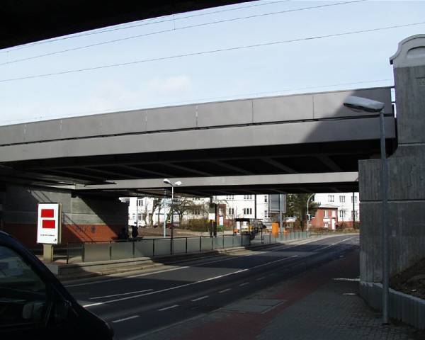 Die Überbauten der EÜ wurden als eingleisige Trogbrücken mit einer Querträgerhöhe von 43 cm erneuert. Auf besonderen Wunsch der DB netz AG sind an dem Geländer Werbetafeln befestigt, damit erscheint der Überbau trotz der Geringen Höhe von nur 1,55 m sehr massiv.