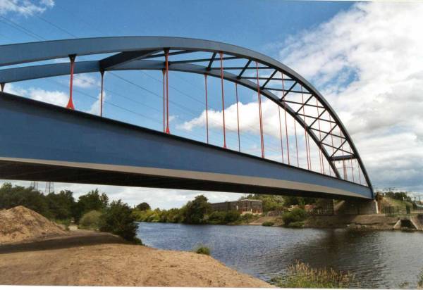 Ansicht Überbau, als optische Gestaltung ist der Hauptträger 2-farbig gestrichen worden.